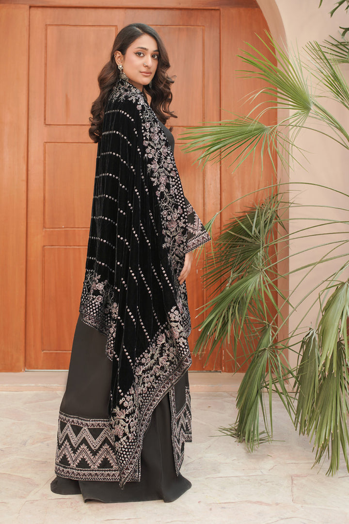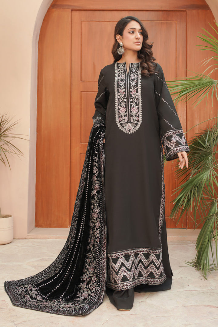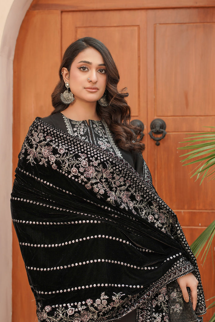MRV-14 (BLACK) 3 Piece Un-Stitched Embroidered Velvet Collection
