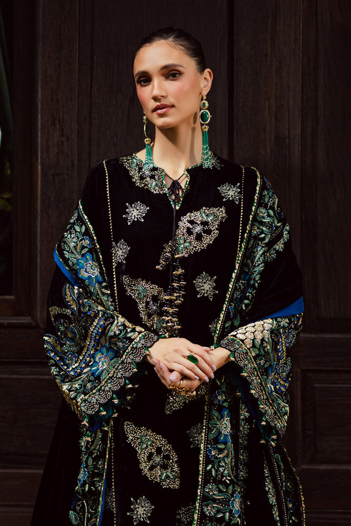Dyed Velvet Sequins Embroidered Front