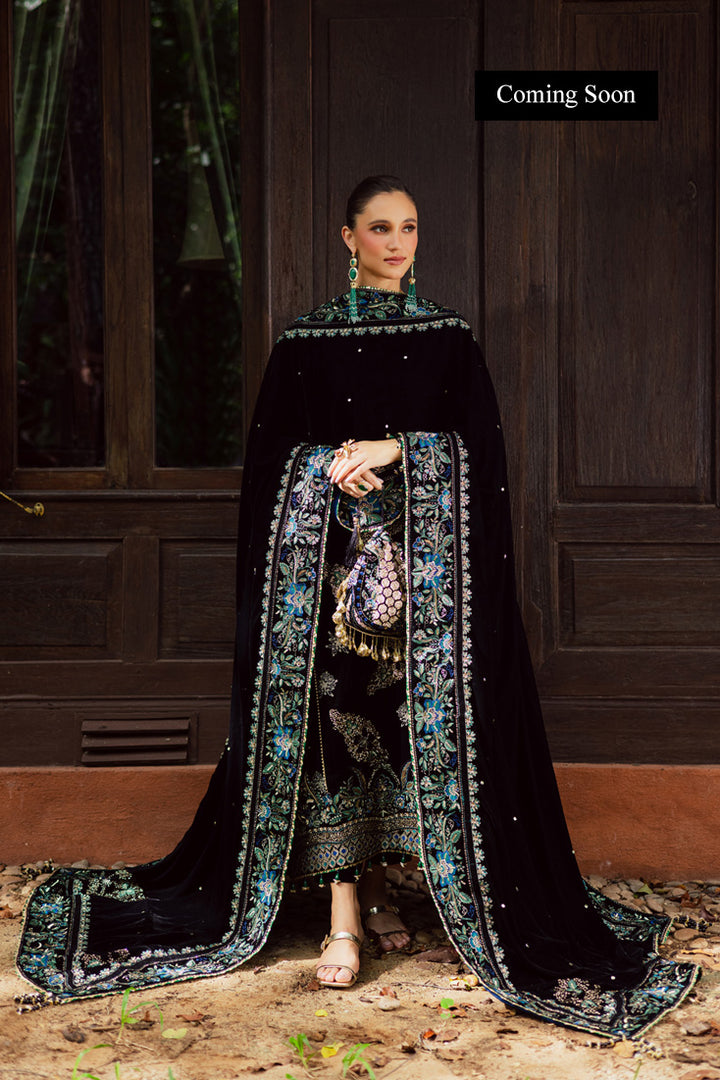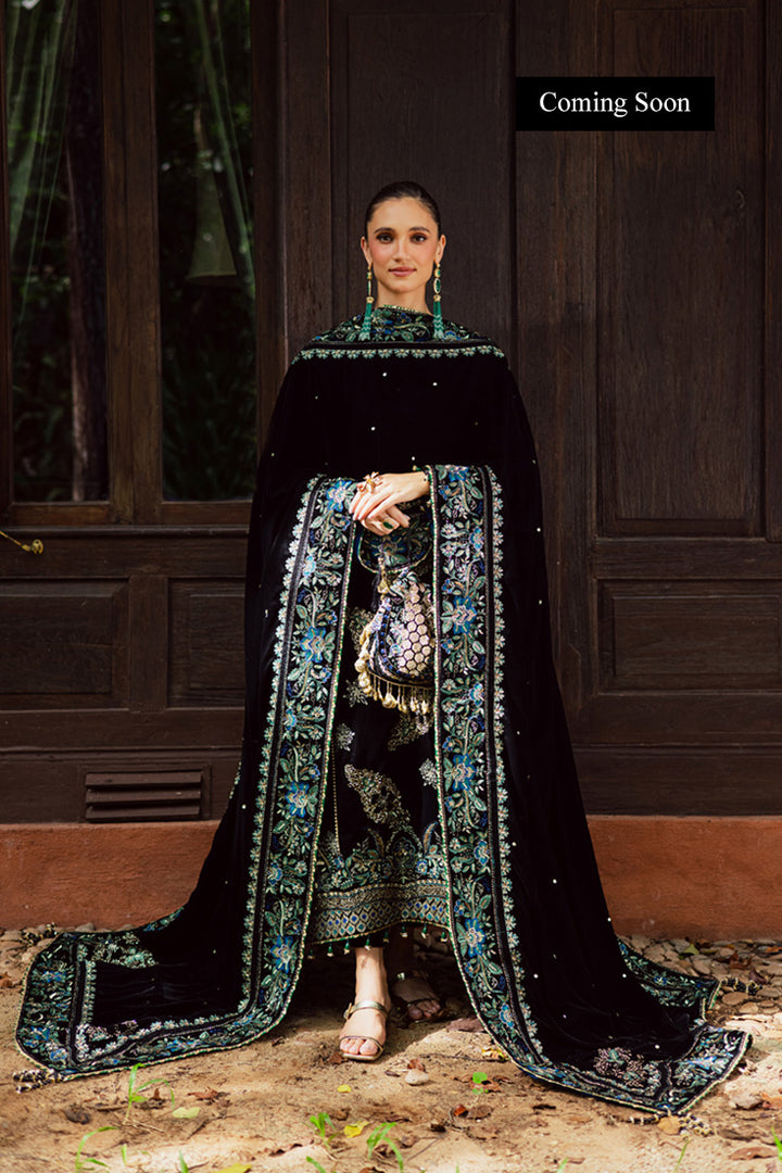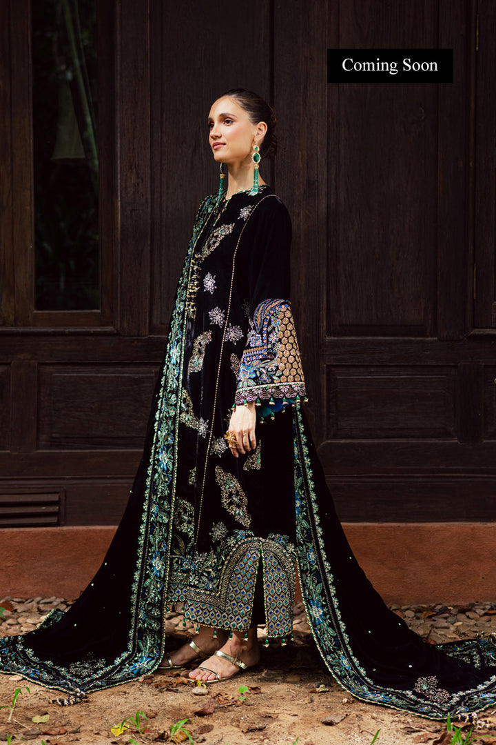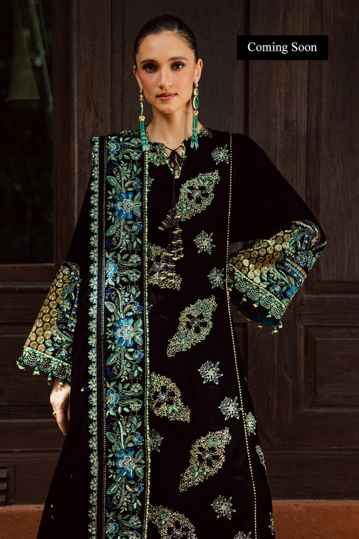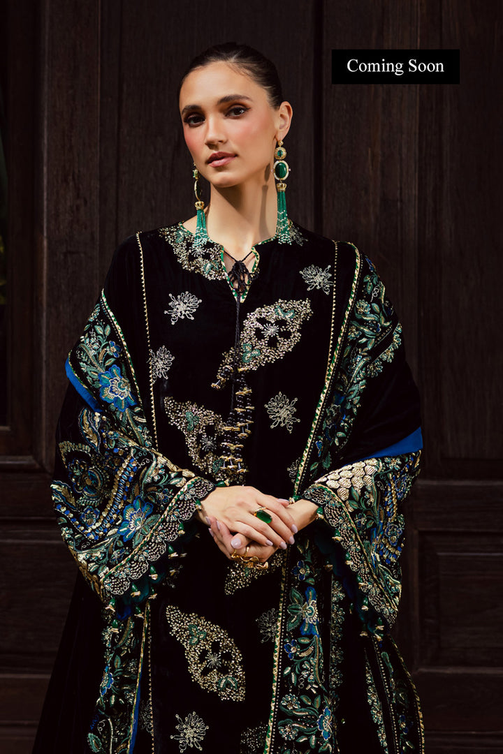 Dyed Velvet Sequins Embroidered Border For Front And Back