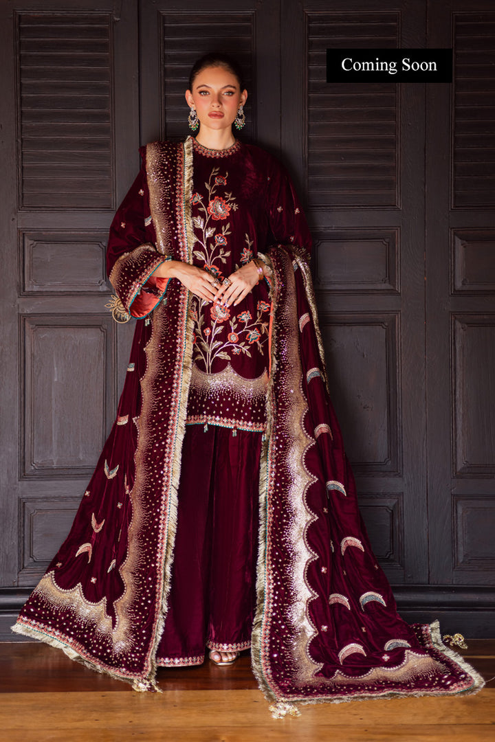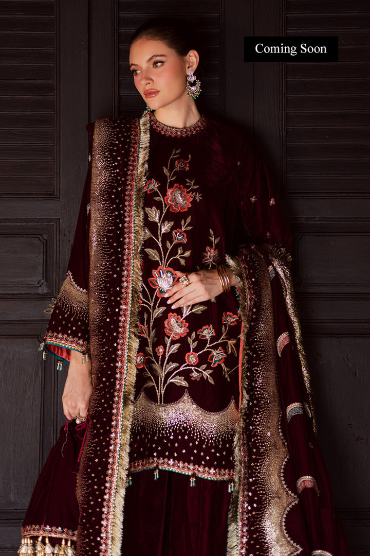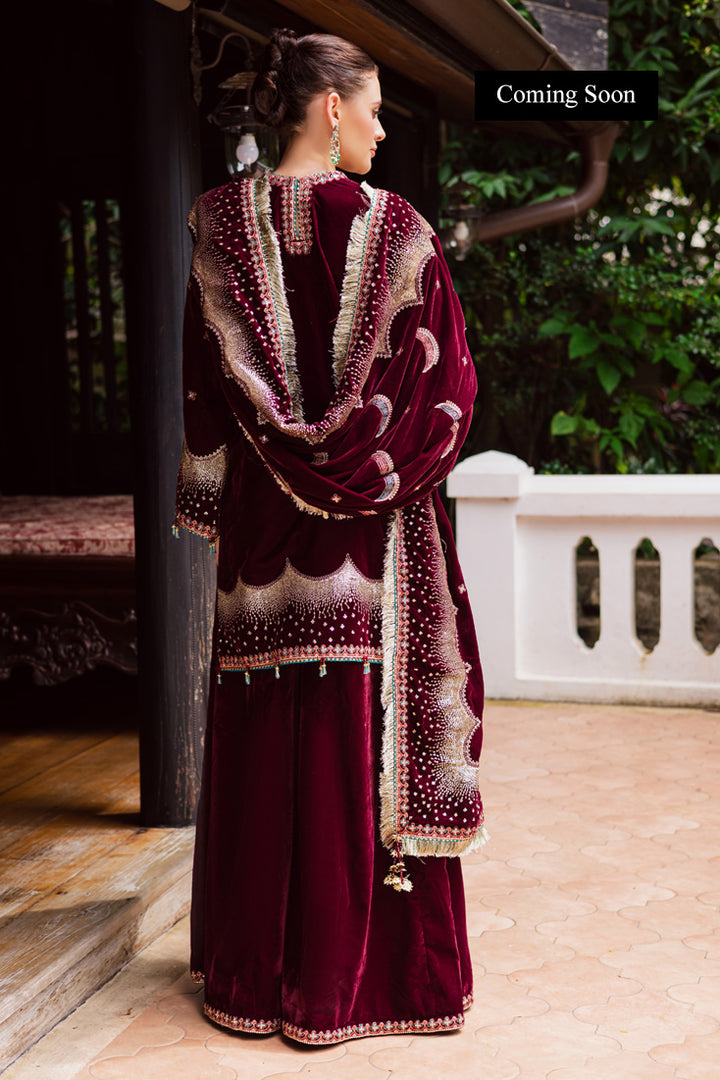 Dyed Velvet Sequins Embroidered Border For Back And Sleeves