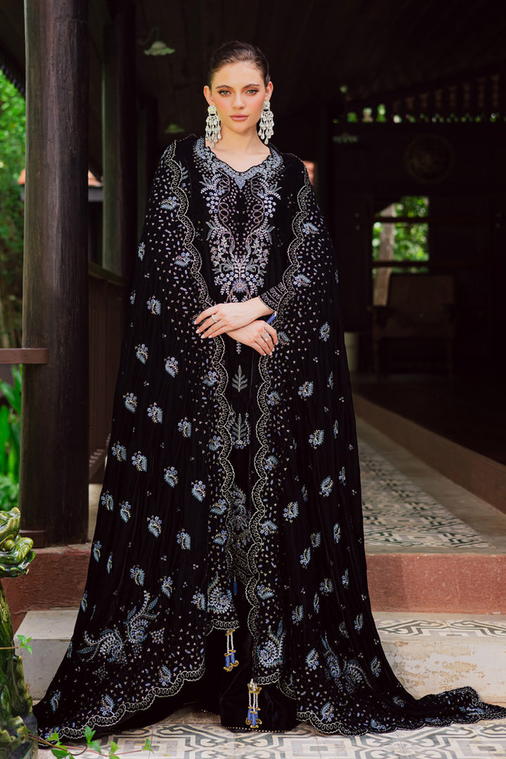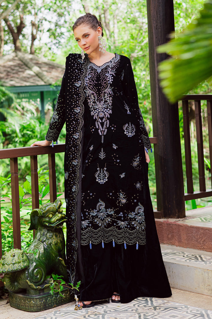 Dyed Velvet Sequins Embroidered Border For Front, Back And Sleeves