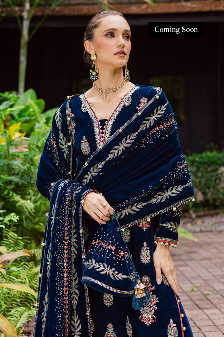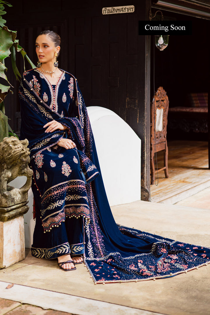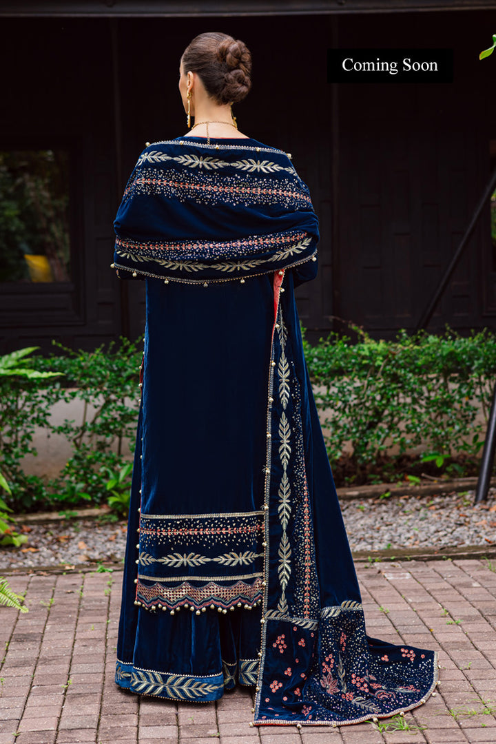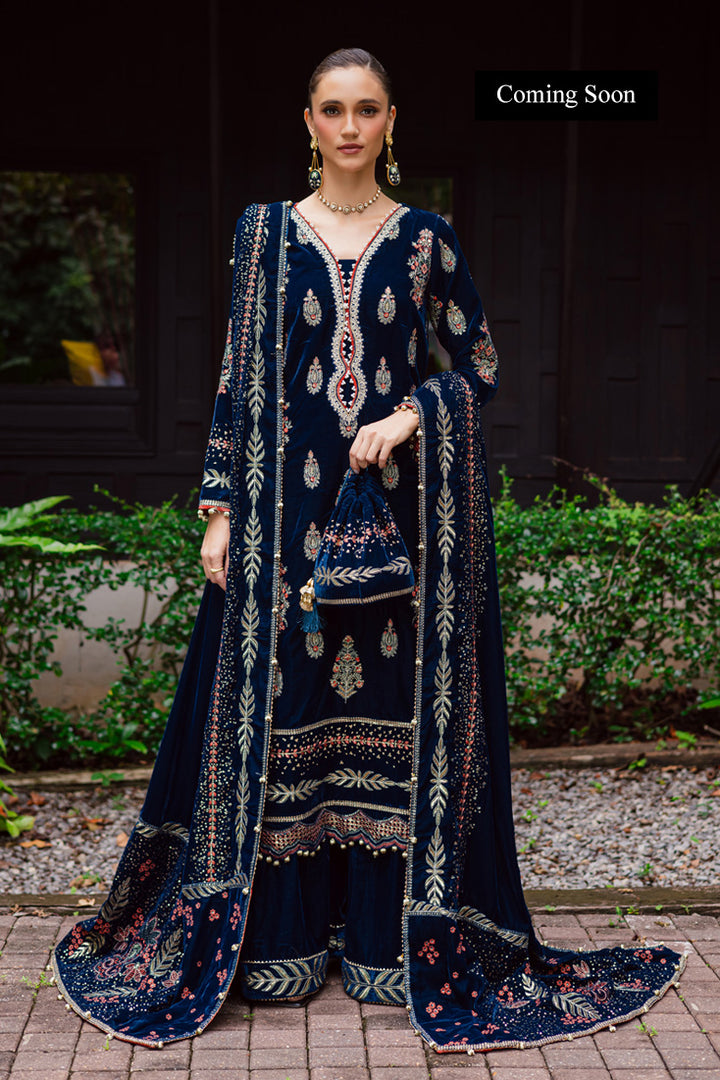 Dyed Velvet Sequins Embroidered Borders For Front Back And Sleeves