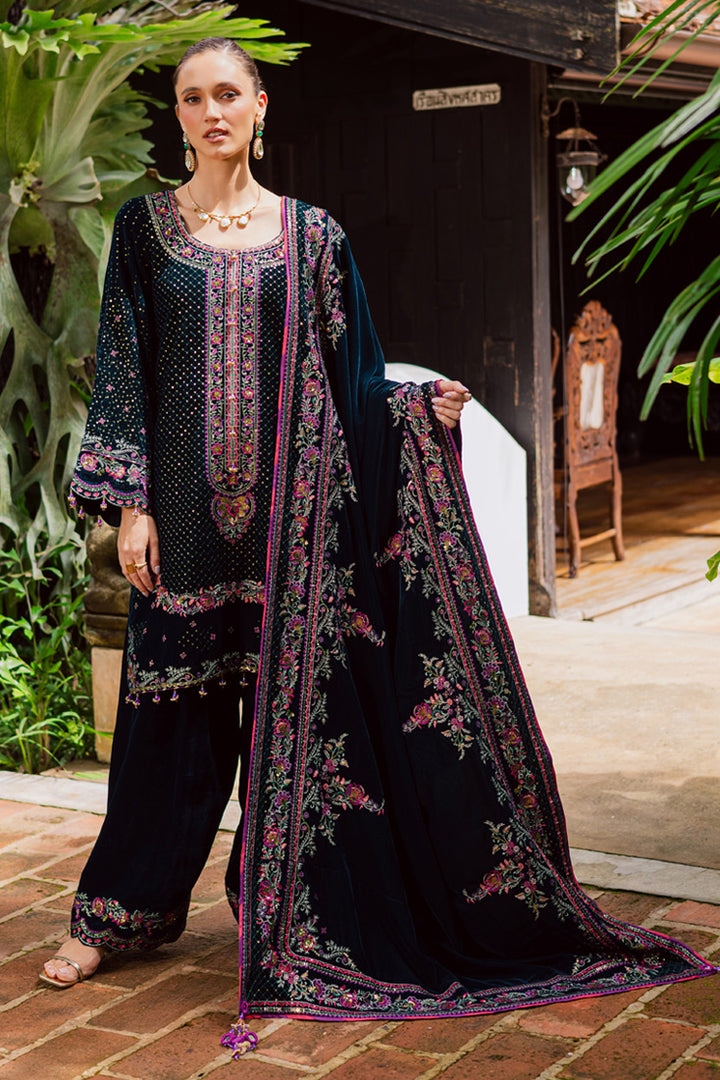 Dyed Velvet Sequins Embroidered Border For Front Back And Sleeves