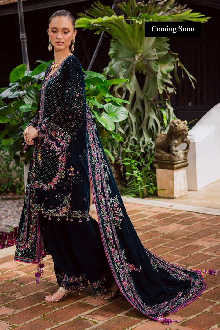 Dyed Velvet Sequins Embroidered Border For Front Back And Sleeves