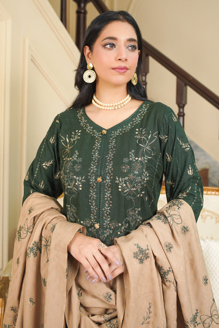 Dyed Self Wool Sequins Embroidered Front