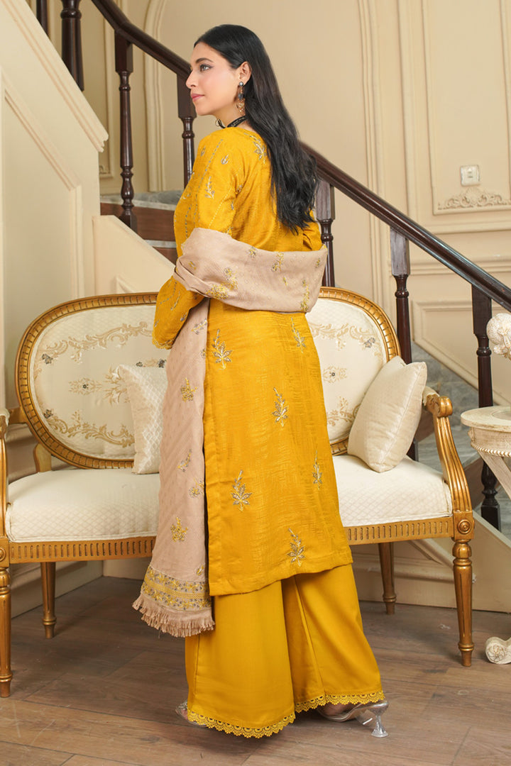 Dyed Self Wool Sequins Embroidered Back