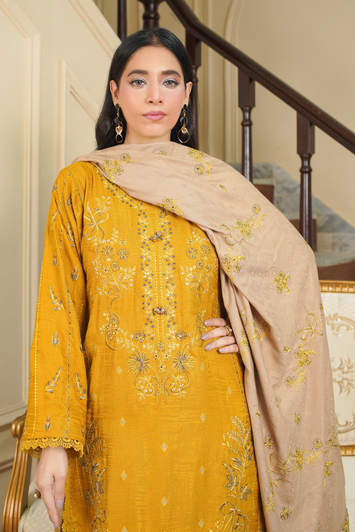 Dyed Self Wool Sequins Embroidered Front